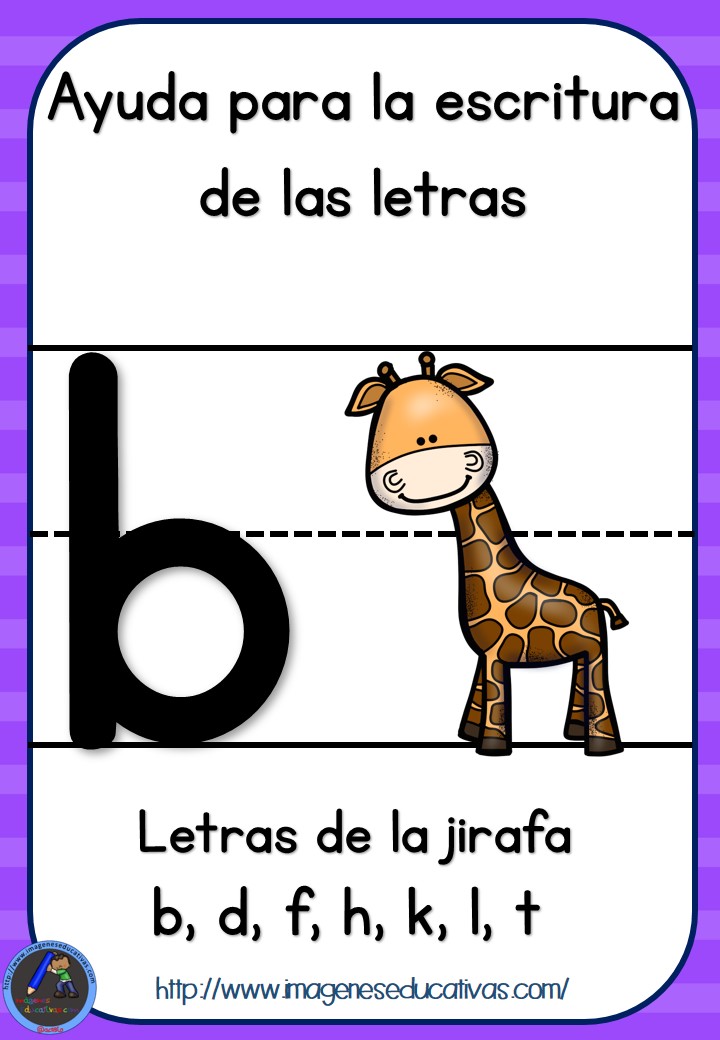 Letras que suben, son las letras de la jirafa, estas letras suben hasta el primer renglón.