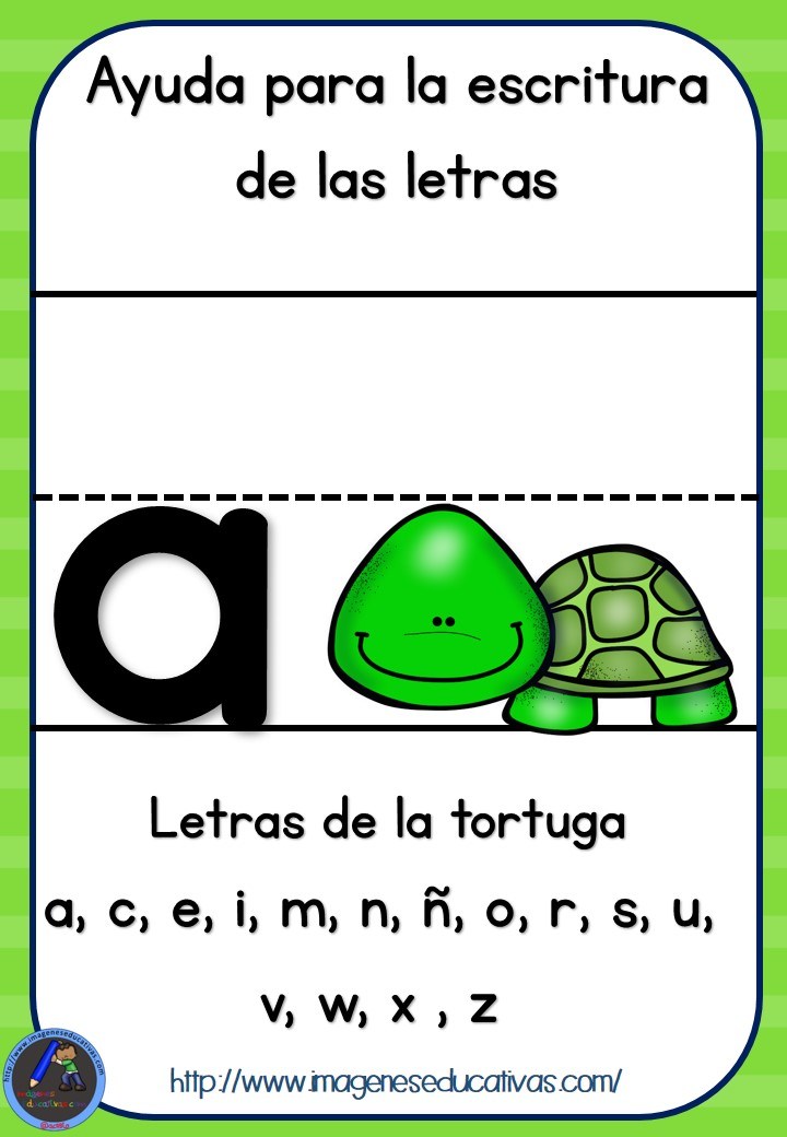 Sabias que existen letras que suben, bajan y se mantienen en el renglón? Estas son las letras de la Tortuga, la jirafa y el monito.